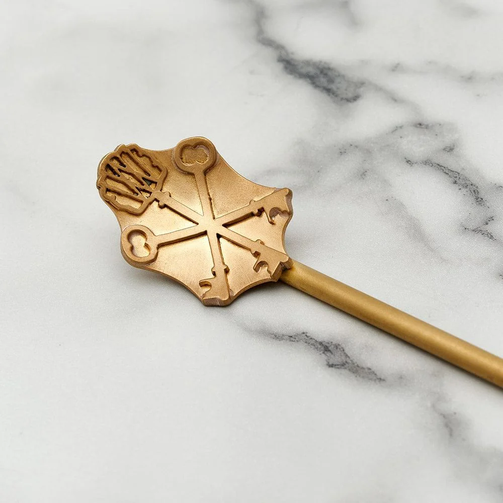 Crafted in brass and embossed with the trademark three keys design that honor and signify the hospitality and the legacies, that tie this collaboration, and this collection together.